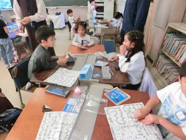 1年生が年長児に教えてあげる場面も見られてきました。少しずつ会話もしているようです。