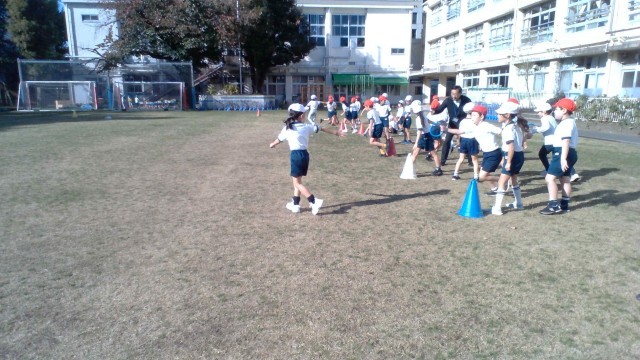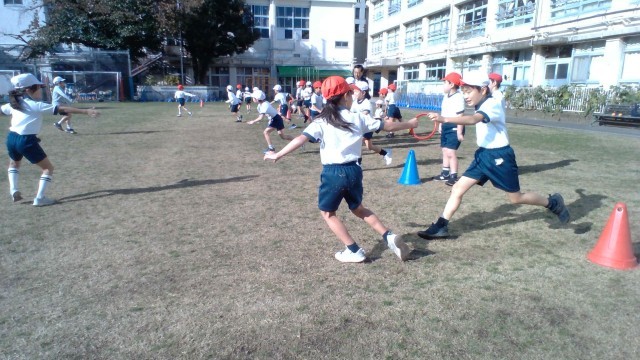 11月14日【2年生】学習の様子 公開日 2025/11/14 更新日 2025/11/14 校長日記 チーム対抗戦の折り返しリレー。 「どうやったら速くゴールできるかな…?」 先生がみんなに問いかけます。 「止まってバトンをもらうのと、走りながらバトンをもらうのは、どっちがいいかな?」 すると、大きな声で返事が返ってきました。 「走ってもらう方!!」 そう、リードが大事! みんなで確認したあと、上手にリードしながらバトンを受け取る子どもたちがどんどん増えていきました!!