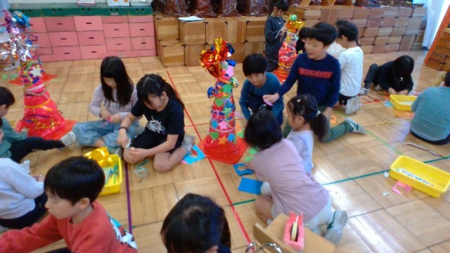 11月20日【2年生】カラフルコーンづくり 公開日 2025/11/20 更新日 2025/11/20 校長日記 きらきらの折り紙で作ったボールや色画用紙の模様もペタペタ。 「ここに貼ろう!」「もっとキラキラにしよう!」と、楽しい声があちこちから聞こえてきました。 完成したコーンは、見ているだけで元気になれる色とりどりの作品です。