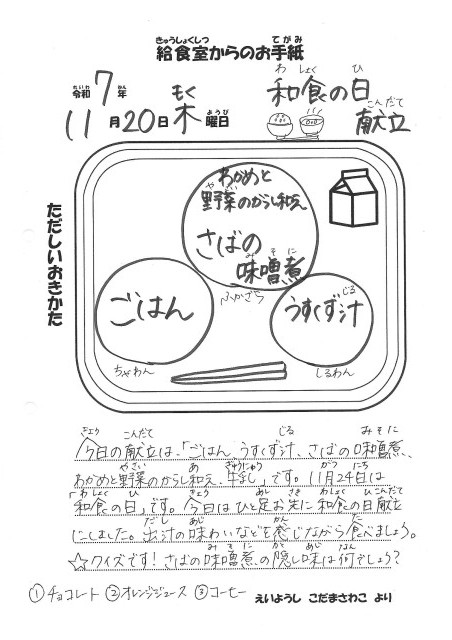 令和7年11月20日(木)~和食の日献立~