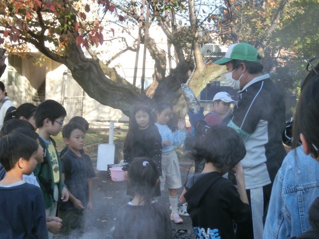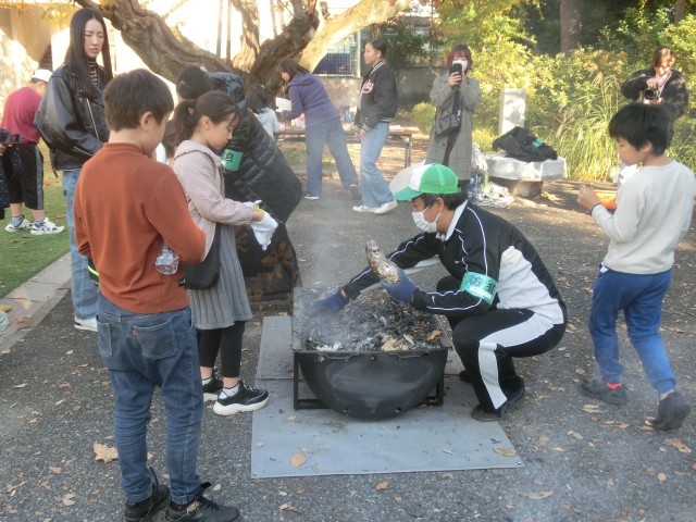 11月22日【PTA】焼き芋イベント 公開日 2025/11/25 更新日 2025/11/25 校長日記 22日には、PTAの焼き芋のイベントがありました。校庭の枯れ葉を使ってサツマイモを蒸し焼きにしました。災害時用のボイラーの点検もかねてふかし芋も作りました。子どもたちは出来上がるまでの間には、保護者のオペラ歌手による発声指導もありました。できたてのおいもは本当においしかったです。