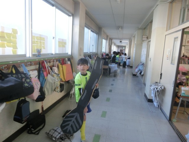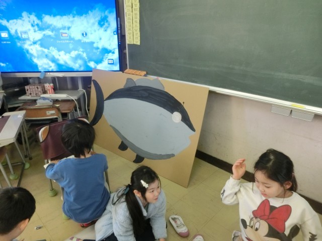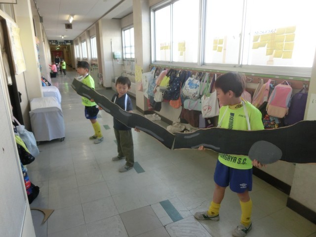 12月9日【2年生】学習発表会 準備 公開日 2025/12/09 更新日 2025/12/09 校長日記 2年生の演目は『スイミー』視覚効果として、さまざまな海の生き物が表現されます。大きな魚「まぐろ」、イソギンチャク、そして今でき上がったばかりのながーい「うなぎ」です。