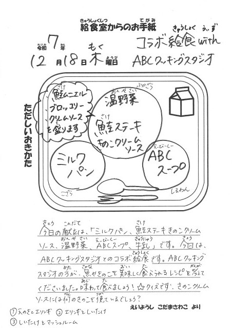 令和7年12月18日(木)~コラボ給食withABCクッキングスタジオ~