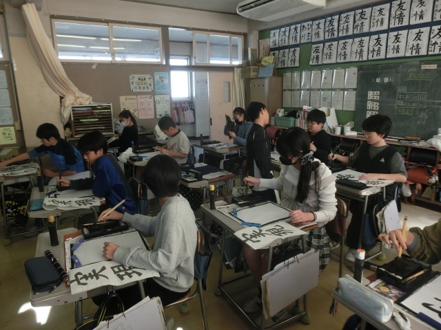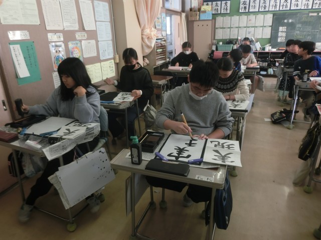 6年生は自分の書いた文字をもっと上手に書くにはどうしたらよいかを考えながら