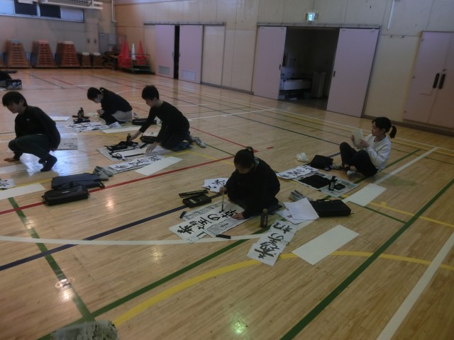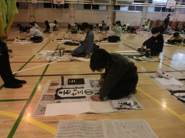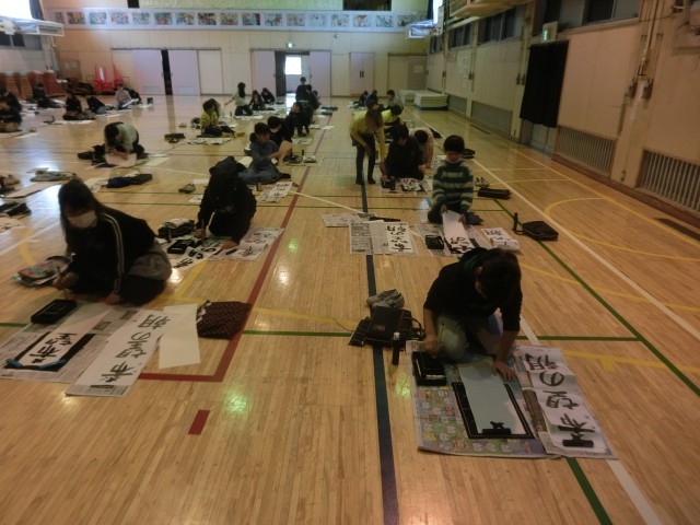 5年生は「希望の朝」と書きました。もじのバランスに気を付けて丁寧に書いていました。