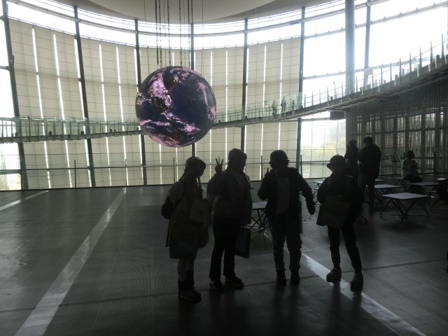 大きな地球儀を背景にグループごとに写真を撮ったら活動開始。