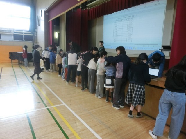 2月20日【全学年】児童集会 公開日 2026/02/24 更新日 2026/02/24 校長日記 児童集会では、委員会の子どもたちからユニークな提案があり「スペースキー早押し大会」が行われました。1秒間にタブレットのスペースキーを何回押せるかクラスごとに競いました。
