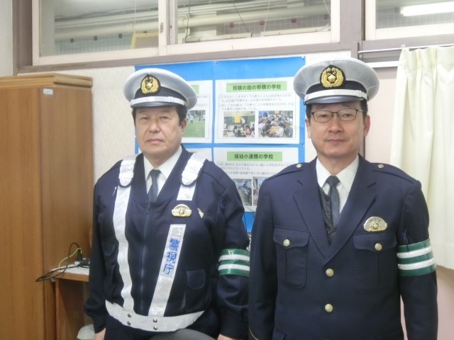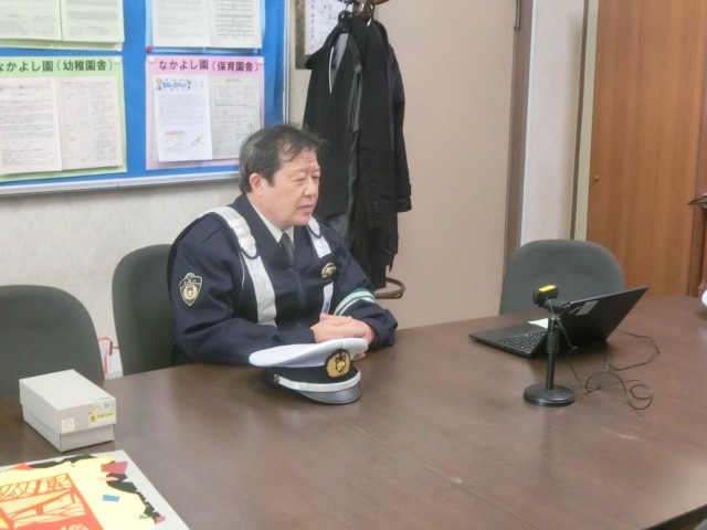 警察の方が来られて全校児童向けに、自転車の安全な乗り方や交通安全について