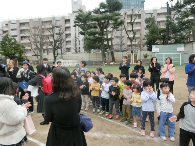 見送りには、なかよし園の園児も参加しおめでとうの掛け声と拍手を送っていました。