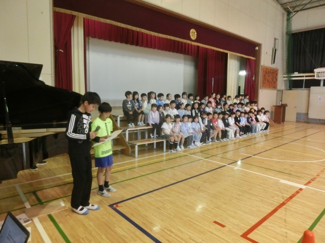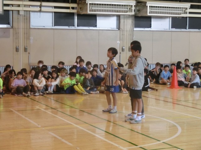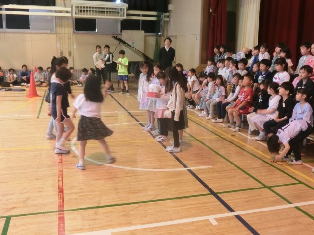 千小じゃんけんで楽しんだあとは、2年生からプレゼントをもらいました。