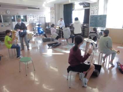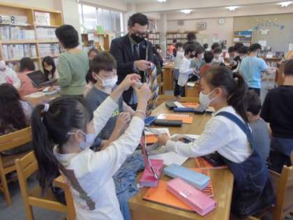 【校長日記】11月11日(木)4年生以外 公開日 2021/11/11 更新日 2021/11/11 校長日記 今日は4年生以外も盛りだくさんでした。3年生はジラフさんを呼んでオリジナルネクタイづくり。管楽器クラブは5年生の朝練も始まりました。いい音出ていました。5年2組は理科の水の流れと浸食の実験です。