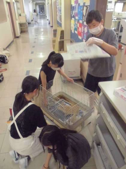 7月4日 うさおの引越し 公開日 2022/07/04 更新日 2022/07/04 校長日記 千駄谷小学校ではウサギを飼っています。 その名をうさおと言います。 先週 酷暑のため、うさおも気の毒だということで、職員室へうさおの住処を一時避難 室内に今、うさおはいます。 飼育委員のみんなが大切に育ててくれています。 今日からは、職員室にお世話にやってきてくれました。 みんな うさおのこと よろしくね!!!