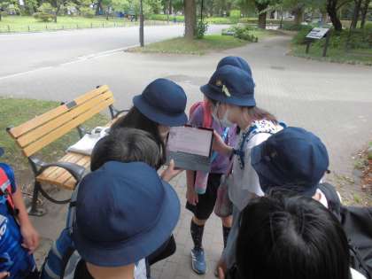 7月5日【6年生】各省庁巡り 公開日 2022/07/05 更新日 2022/07/05 校長日記 この各省庁巡りでは、2人組で担当省庁の調べ学習を事前にしており各省庁の前で、省庁についての発表をしてくれました。 さすがは6年生です。 社会科政治の学習を終えてすぐの見学だったので、今日の見学は振り返りにちょうどよかったと思います。 学校に帰ってからまとめの学習を行います