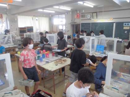 7月14日【5年生】 ゴルフゲームパズル 公開日 2022/07/14 更新日 2022/07/14 校長日記 5年生はゴルフゲームパズルを作っていました。 板に思い思いの絵をかき、糸のこぎりを使ってパズルのピースをつくっていきます。 ゴルフのホールを作ってパズルのピースに開け、パターゲームもできる代物です。 自分自身で作ったもので実際に遊ぶところまでが学習です!! 完成に向けて、子供たち熱心に作業に取り組みました。