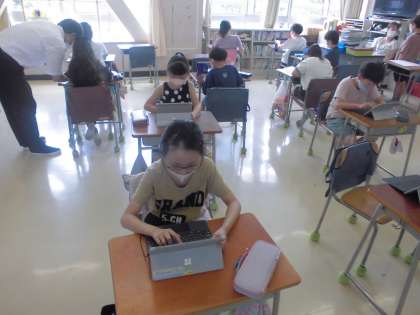 大掃除をしている学級もあれば、隣のクラスでは、タブレットで学習中でした。