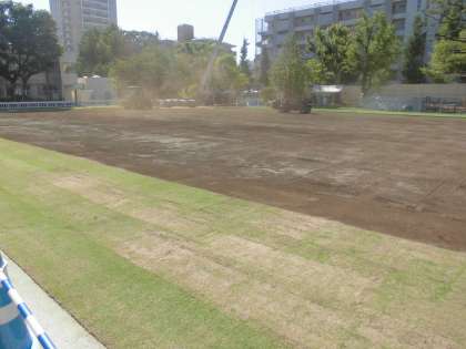 すでにお知らせしたとおり、本日、芝生敷設の見学会を行います。