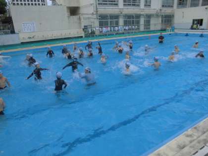 3校時目になると空も随分明るくなり、 4年生は、今日 プールを行いました。