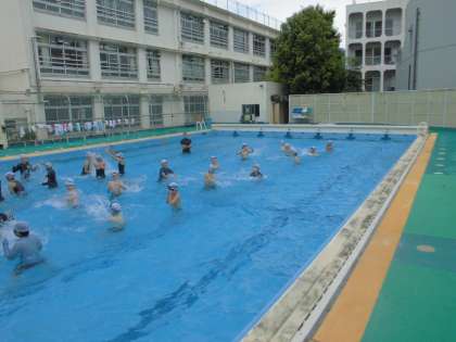 今年は、梅雨時に雨が少なく、夏休み前に水泳指導ができた学年が多かったのですが、4年生は、御殿場移動教室もあり、今回が2回目水泳指導でした。