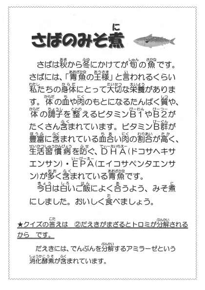 今日のさばのみそ煮はいつにも増して美味しかったと言われました。