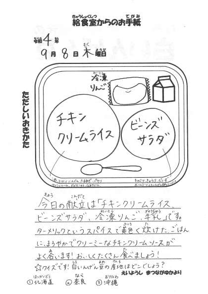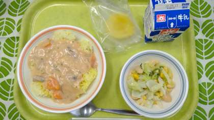 「ルーがほんのりピンク色だし、味もクリームシチューとは少し違う、、、何が入ってるんですか?」といろいろな子どもや先生に聞かれました。