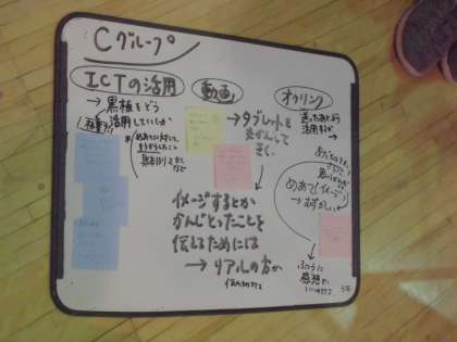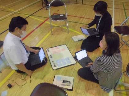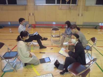 授業の後は、体育館で先生たちが集まって、よりよい授業の在り方をテーマに