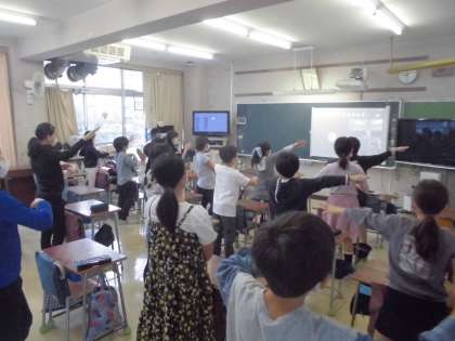 10月14日 陸上記録会 壮行会 公開日 2022/10/14 更新日 2022/10/14 校長日記 オンラインで行いましたので 応援団がイングリッシュルームから各教室に配信 一緒になって、6年生に 熱い思いを伝えました。 頑張れ!!6年生 優勝だ!!!!