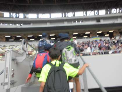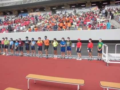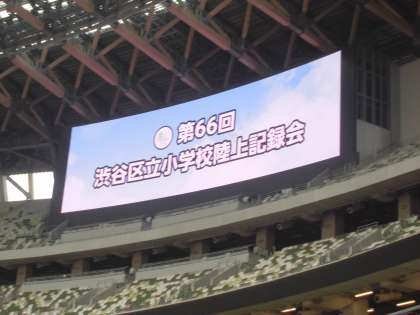 10月17日【6年生】 到着!! 公開日 2022/10/17 更新日 2022/10/17 校長日記 会場に入って 先ず その大きさに驚かされます。 電光掲示板には、陸上競技大会の文字が さすがに日本最高峰の競技場だなあと改めて実感します。 到着するとすぐに自分たちの応援席に そして 開会式の準備です