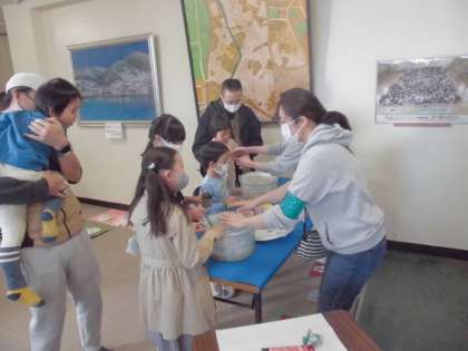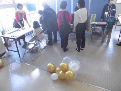 体育館の入り口付近でのアクティビティです。 いろんな作品を制作中です!!
