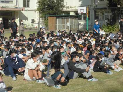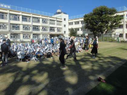 今日も素早く避難できました。全員が校庭に集合、人数確認できるまで4分かかりませんでした!!   はやい!!!