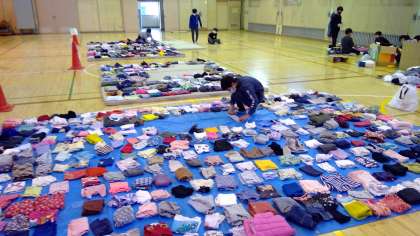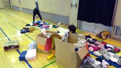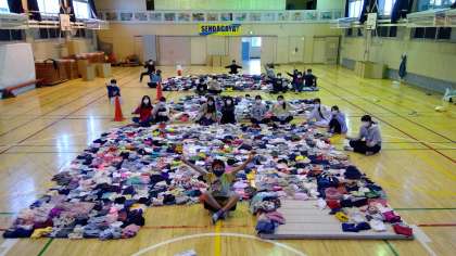 体育館で集まった洋服をきれいにたたんで発想の準備をしたのですが・・・