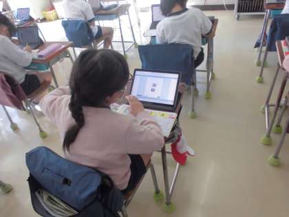 上の写真は、漢字ドリルを使って漢字を書く学習でも