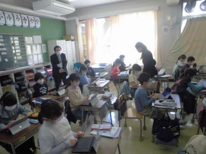 11月21日【3年生】 道徳の授業 公開日 2022/11/21 更新日 2022/11/21 校長日記 隣のクラスでは、道徳の授業をしていました。 また、今日は、教育委員会の先生がお越しになり、授業を見てもらう日でもありました。 テーマは、親切 町中のさまざまな場面で親切な行為を進んで行おうとする気持ちをもってもらおうという授業です。 いろいろな場面でできることが上がりました