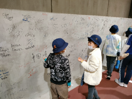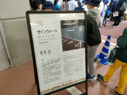 サインウォール 選手たちのたくさんのサインが地下駐車場に書かれていました。