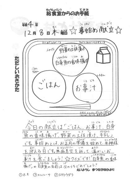 【今日の献立】12月8日(木) 事始め献立