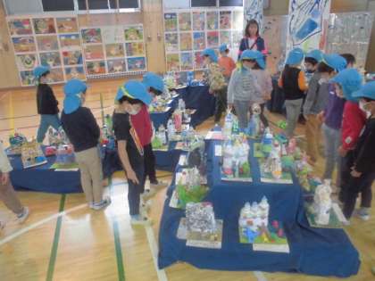 園児さんたちも作品を見に来てくれました。