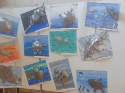 12月10日【5年生】ここは竜宮城 公開日 2022/12/10 更新日 2022/12/10 校長日記 作品をご覧になっている人 「この鉄板を加工するのは、難しかったのでは・・」とお話しされていて これ、画用紙ですということを言うと とても驚かれていました。 画用紙 サンドペーパー 墨汁で 質感が金属のようになります。 これはすごい!!