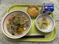 今日の献立 ・ごはん ・切干大根のみそ汁 ・さばの香味焼き ・和風サラダ ・牛乳