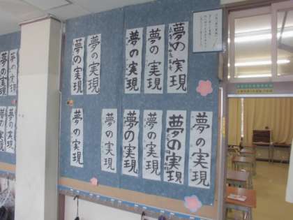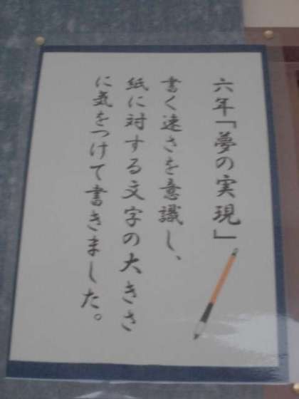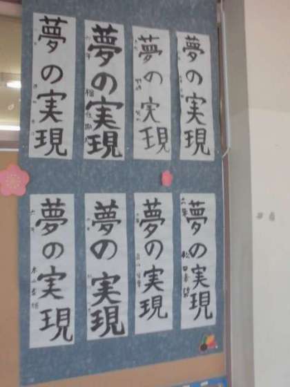 1月23日【6年生】夢の実現 公開日 2023/01/23 更新日 2023/01/23 校長日記 いよいよ 6年生の作品です。 6年生の「夢の実現」 バランスのとりにくい、難易度の高い文字が並びます。 けっこう 平仮名って 難しいものです。 よく書けています。 力強いです!! ご覧ください