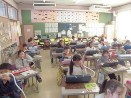 2月6日【1年生】 鍵盤ハーモニカ 公開日 2023/02/06 更新日 2023/02/06 校長日記 1年生の教室を覗くと 鍵盤ハーモニカの練習をしていました。 きらきら星の演奏です。 私も子供の頃にこの曲を弾いた記憶があります。 みんなでそろって、 きらきら星 子供たちとっても上手に演奏していました。