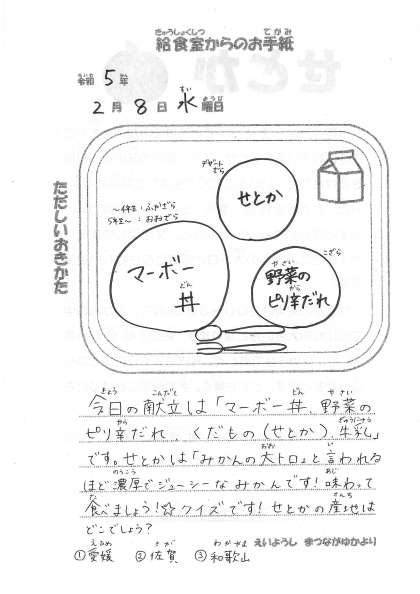 【今日の献立】2月8日(水)