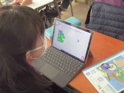 2月9日【5年生】 プログラミング教室 公開日 2023/02/09 更新日 2023/02/09 校長日記 同じ時間、 5年生たちはゲストティーチャーである キッズバレーの方々を招いて、プログラミング教室です。 今日は、算数で学習した多角形の作図をプログラミングで書いてみました。 難しいようで、コツをつかむと結構・・・・ どうだったのでしょうか