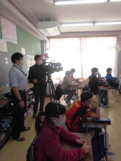 2月9日 テレビ局が・・・・ 公開日 2023/02/09 更新日 2023/02/09 校長日記 今日の午後 取材が入り5,6年生が急遽インタビューに・・・ みんなドキドキだったでしょうが、 しっかり受け答えをしていて、 さすがだなあと改めて感じました。 その時の様子です
