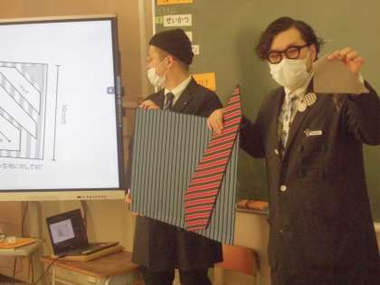 2月18日【1年生】ネクタイ生地の缶バッジぐくり 公開日 2023/02/18 更新日 2023/02/18 校長日記 学校公開の1時間目 giraffeさんの協力のもと 1年生は、ネクタイ生地を使った缶バッジづくりを行いました。 出来上がった缶バッジをタブレットで撮影したり、実際に付けて見たりして楽しみました。