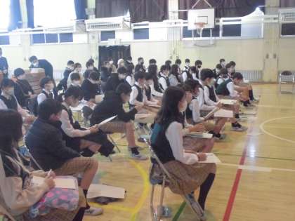 2月18日【6年生】 将来の夢 公開日 2023/02/18 更新日 2023/02/18 校長日記 6年生は、体育館で将来の夢の発表を1,2組合同で行っていました。 この後移杖式があるということで、今日は、よそゆきの衣装でびしっと決めています。 プレゼンテーションソフトを使いながら、自分たちの夢などについて伝えました。
