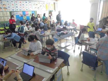 2月18日【1年生】缶バッジづくり 公開日 2023/02/18 更新日 2023/02/18 校長日記 今日は、学校のいろいろなところでイベントがあり、今回のバッジづくりも バッジを作っているところの写真が取れませんでした。 できあがったバッジ 嬉しそうにつけている子供たちです!!