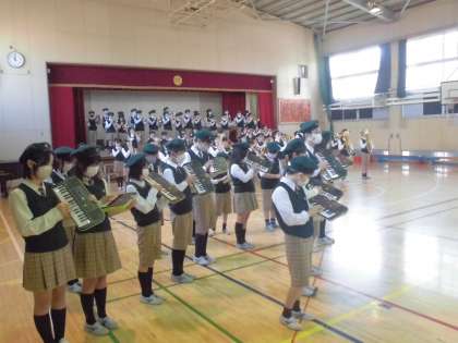 2月18日 移杖式 公開日 2023/02/18 更新日 2023/02/18 校長日記 3校時目は、移杖式本番です。 今年は3年ぶりに演奏あり 多くのお客様の前で演奏ができました。 素晴らしい演奏で、感動しました。 この移杖式は バトンタッチの儀式です。 6年生から5年生へ