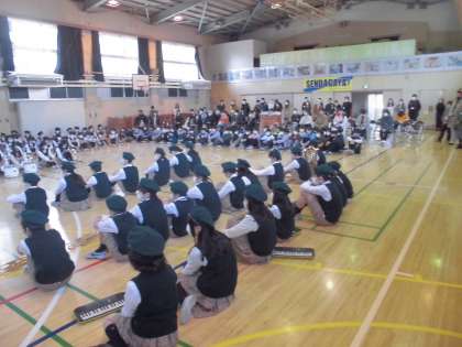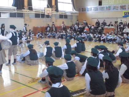 2月18日 移杖式 公開日 2023/02/18 更新日 2023/02/18 校長日記 6年生は、このコロナ禍で途切れかけた伝統の連鎖をしっかりつなぎとめてくれました。 鼓笛隊は、千駄谷小学校の大きな一つの伝統です。5年生は、その伝統をしっかりと受け継ぎます。 子供たちの頑張りでとても晴れやかで、輝かしく、素晴らしい会となりました