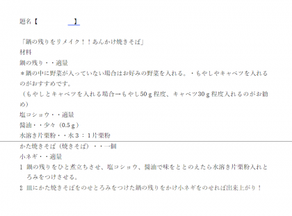 フードロスの運動のために 食べ残しを減らすためのレシピをみんなに広めたい。