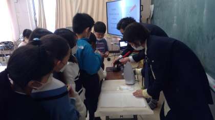 最後に ジラフさんのネクタイの生地で缶バッジづくりをした様子です。