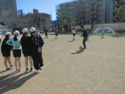 2月27日【5,6年生】FC東京によるサッカー教室 公開日 2023/02/27 更新日 2023/02/27 校長日記 本日、3,4校時目は、5,6年生がサッカー教室をしました。 FC東京の皆さんいお手伝いいただきながらのサッカーの授業でした。 ゲストを迎えると子供たちもやる気が上がるようです!! 楽しそうにボールを追いかける様子です!!